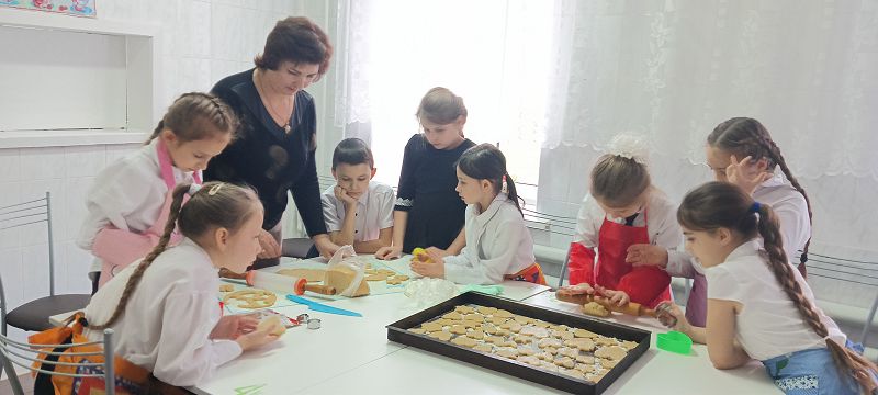 Орлята России 3 класса под руководством классного руководителя Горьковенко Т.Н. в школьной столовой испекли имбирное печенье в посылки солдатам на СВО.