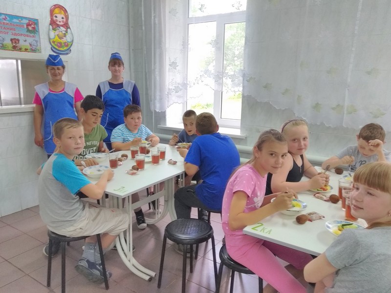 Утро начинается с зарядки на школьном дворе. В школьной столовой повара Горохова Е.А. и Рустамова Р. С. под руководством замдиректора по АХЧ Орловой Т.Н. готовят вкусные витаминизированные завтраки и обеды.