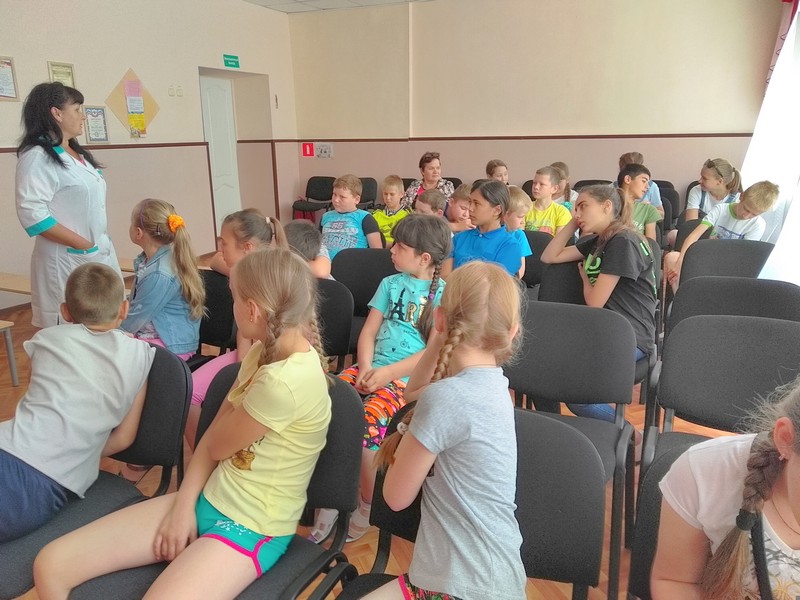 Ежедневно общее физическое состояние по здоровью воспитанников проверяет медсестра ФАПа Калачёва Инна Витальевна. Инна Витальевна проводит в лагере пятиминутки по охране жизни и здоровья.