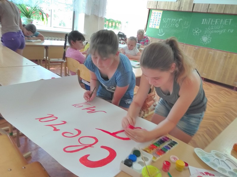 В этот день девочки-художницы Бабкина Светлана и Горохова Анастасия оформляли плакат «Свеча Памяти» к 22 июня, ко Дню Памяти и скорби. Самые усидчивые складывали картины из пазлов.