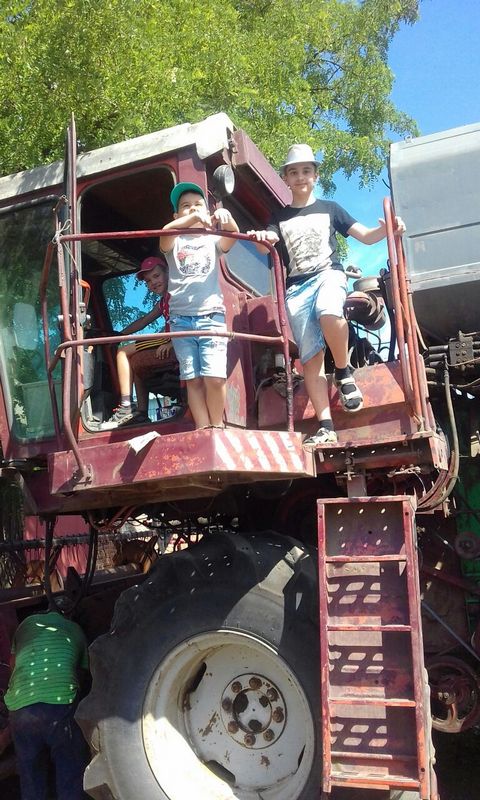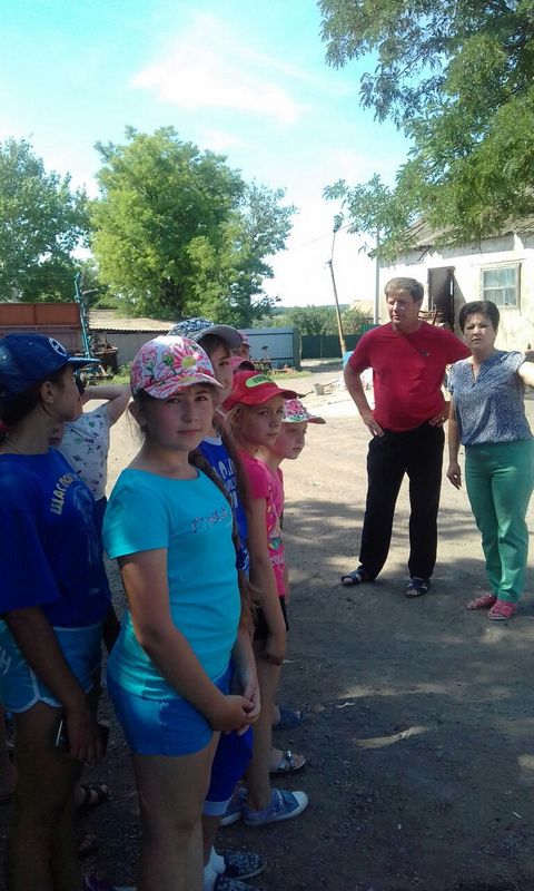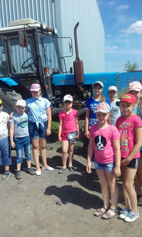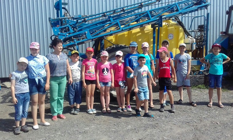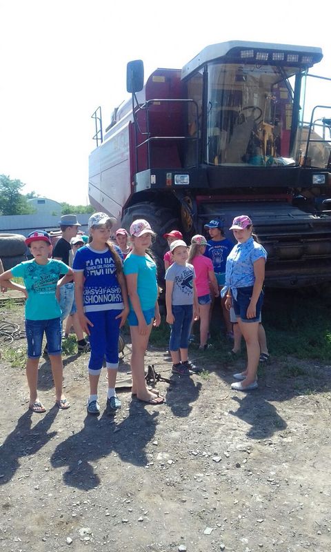 Сегодня по улице Школьной отряд прошел на окраину села Миллерово , где расположена база ООО КХ «Возрождение». Воспитанников лагеря «Подсолнух» встретил Бабкин Олег Алексеевич, директор крестьянского хозяйства, показал сельскохозяйственную технику, познакомил с рабочими, которые были заняты подготовкой техники к жатве 2018.