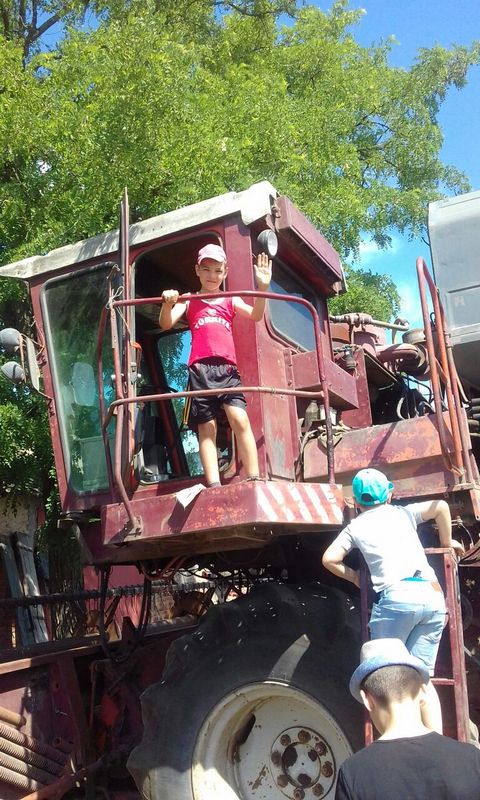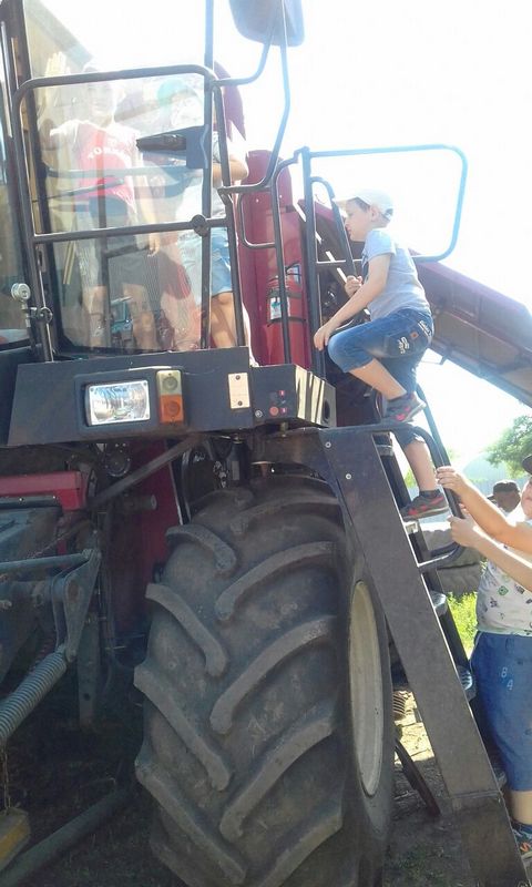 Дети могли не только рассмотреть тракторы и комбайны, но и побывать в кабине «железных коней».