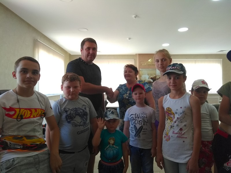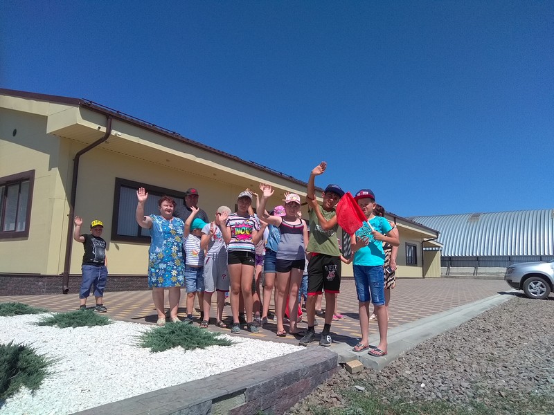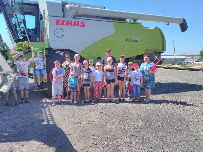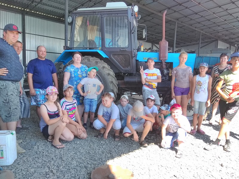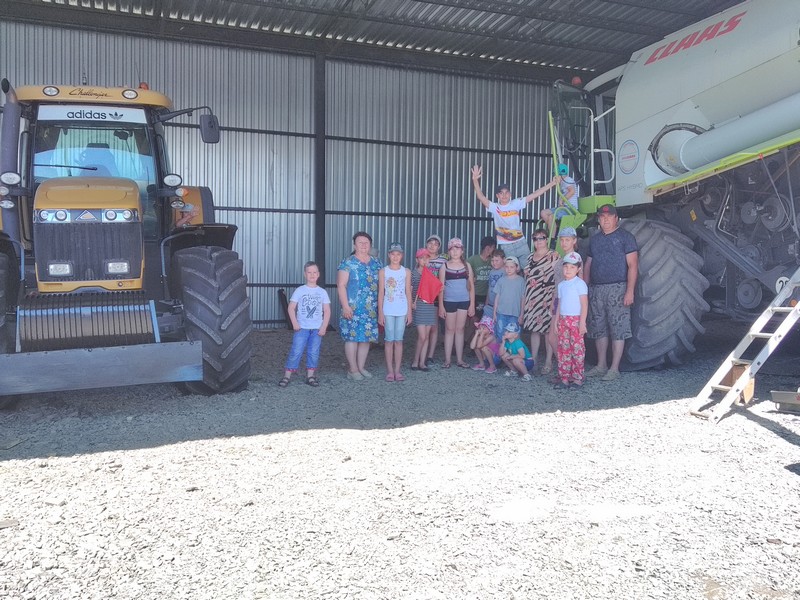 Экскурсию по предприятию провел агроном Валерий Юрьевич. Мы увидели идеальный порядок на территории, чистоту и ухоженность каждого трактора и комбайна. В больших ангарах дети здоровались с эхом, рабочим пели песни и говорили «кричалки» о веселой жизни в лагере. Желали успехов в работе и поздравляли с новым рабочим днем.