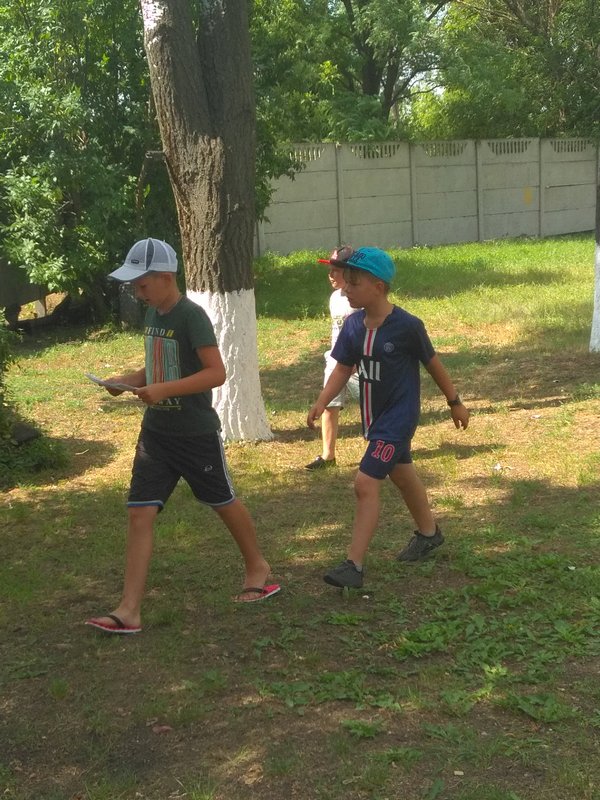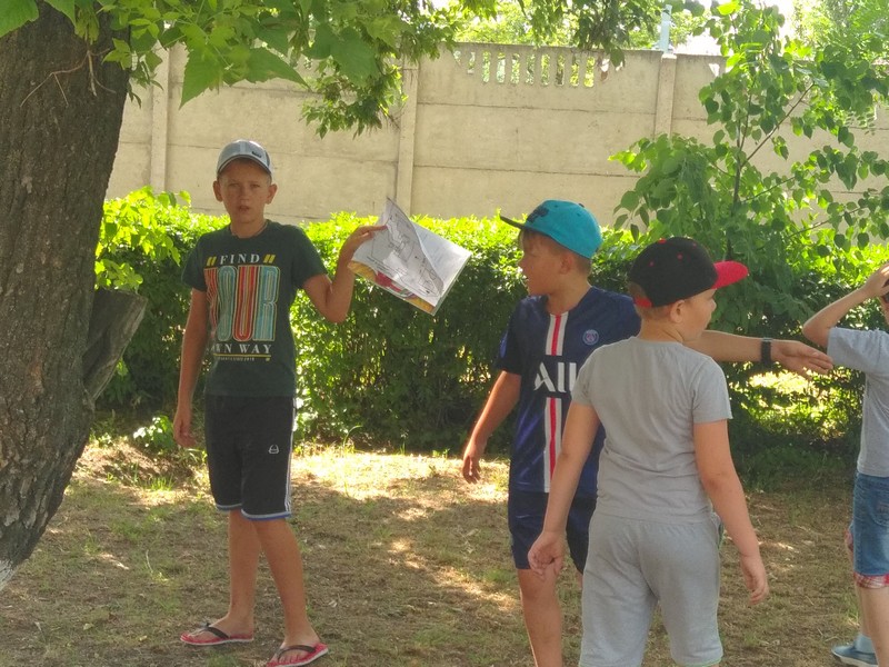 Согласно плану - игры на воздухе. Живов В.Н., учитель физкультуры, провёл соревнование между отрядами на ориентирование на местности. Ребята с заданиями справились, пришлось потрудиться, вспоминая зашифрованные города Ростовской области и названия олимпийских видов спорта.