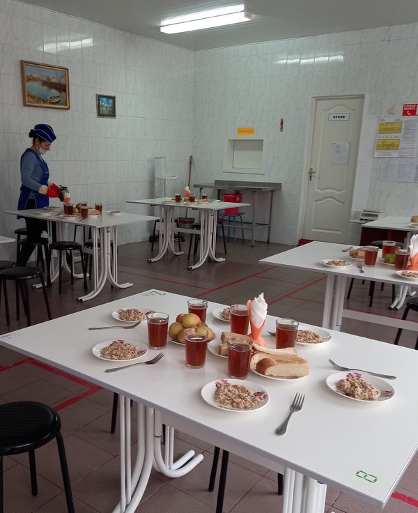 Следует отметить отличное санитарно-техническое содержание обеденного зала: чисто, светло, влажная уборка и проветривание проводятся после каждого приёма пищи, когда дети на уроках.