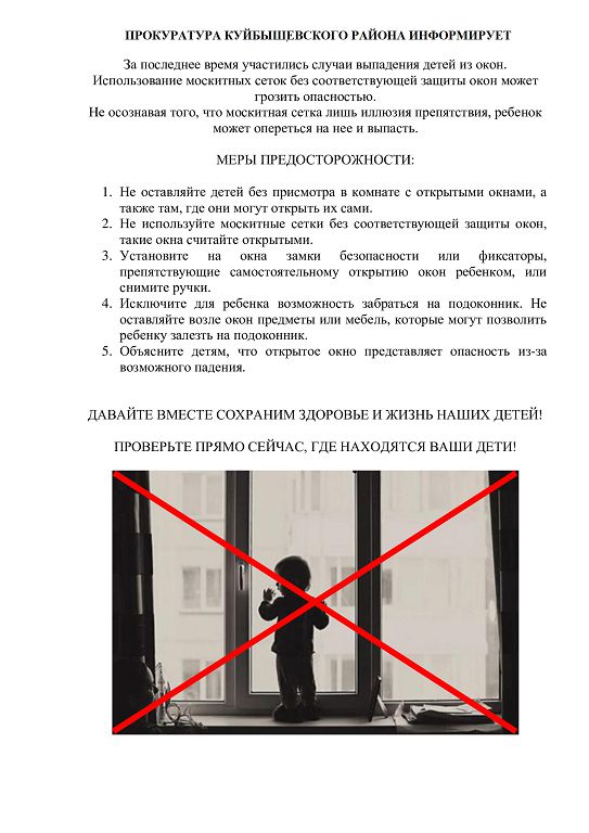 Памятка для родителей «Как предотвратить выпадение ребенка из окна»