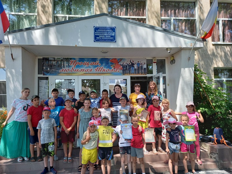 Воспитанники пришкольного оздоровительного лагеря «Подсолнух» вместе с воспитателем Зима Валентиной Петровной совершили автобусную экскурсию по памятным местам Куйбышевского района. Дети посетили мемориальную арку у хутора Кумшатского, возложили цветы.