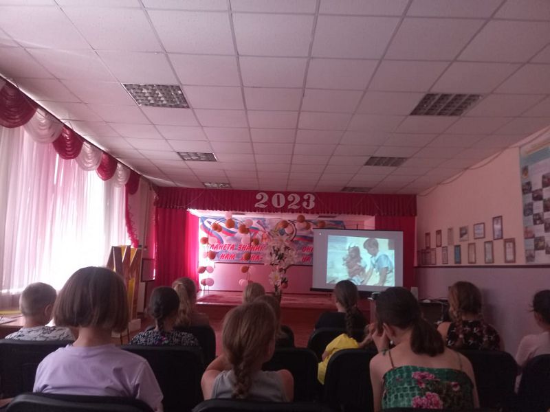 В актовом зале состоялся Кинолекторий. Воспитанники школьного лагеря "Подсолнух " посмотрели художественный  фильм "Садись рядом, Мишка". (фильм о войне) Фильм понравился. Обсудили тему фильма и героев. Дети поняли, что самое главное крепкая настоящая дружба.