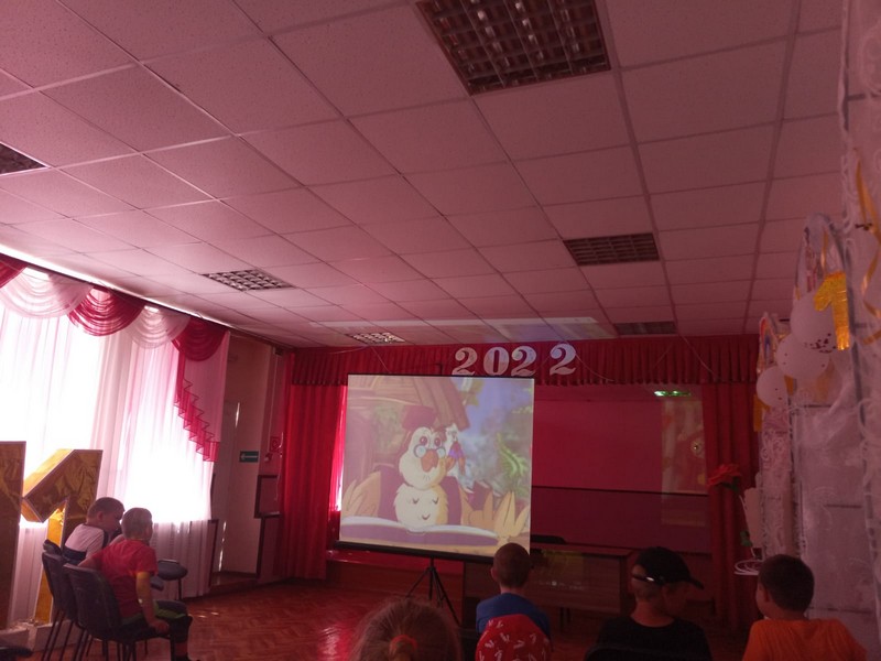 В актовом зале смотрели презентацию «Безопасность в быту» (Когда я один дома).