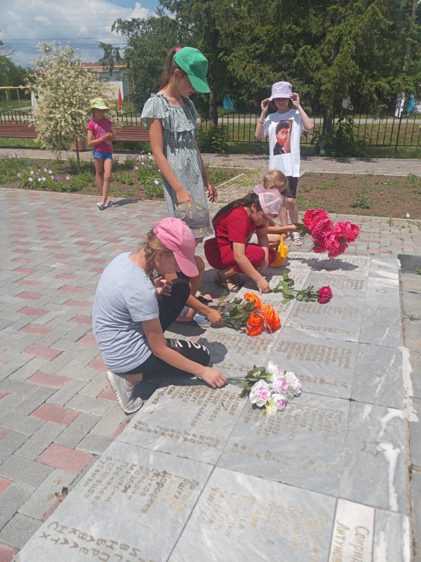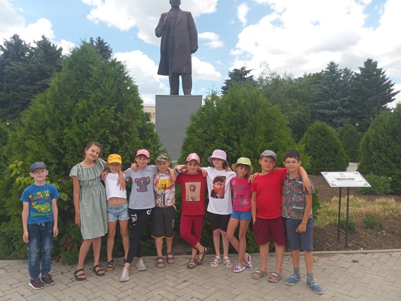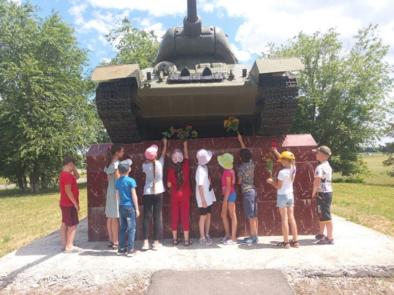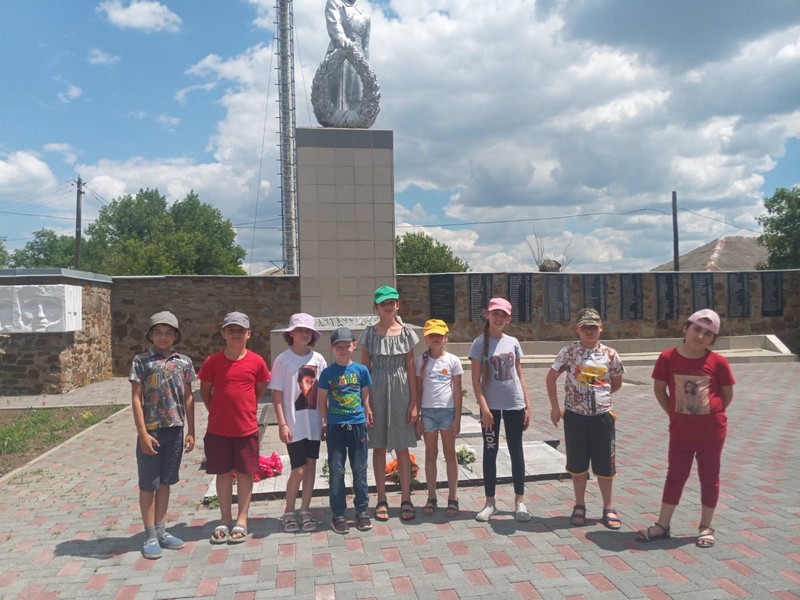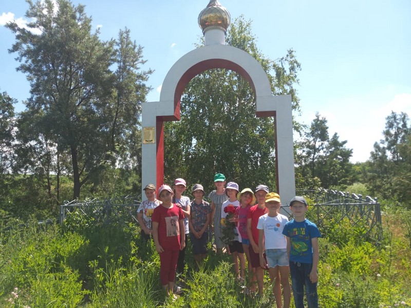 Воспитанники пришкольного оздоровительного лагеря «Подсолнух» вместе с воспитателем Зима Валентиной Петровной совершили автобусную экскурсию по памятным местам Куйбышевского района. Дети посетили мемориальную арку у хутора Кумшатского, возложили цветы.