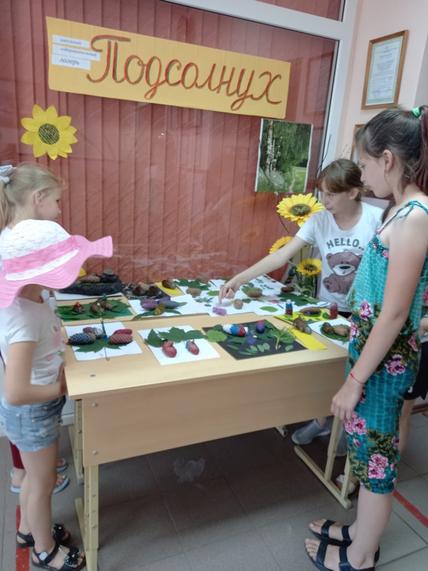 Сегодня день в пришкольном лагере посвящён семье. В каждой группе проведены конкурсы рисунков «Моя семья». Дети рисовали себя и всех членов семьи. Есть рисунки, на которых членом семьи являются и кошки, и даже две коровы. Выставка на витрине «Подсолнух».