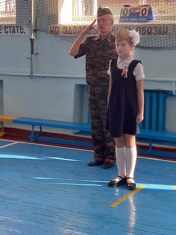 Спортивный зал школы (место проведения смотра) приветствовал участников своей торжественностью, плакатами с 23 февраля, флагами России и Ростовской области.
