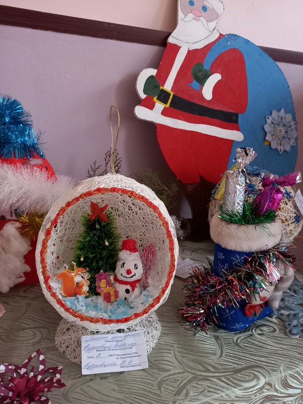 Новогоднее настроение поднимают тематические композиции, связанные с ожиданием чудесных встреч с Ёлкой, Дедом Морозом и Снегурочкой. Вытынанки на больших окнах школы помогли создать пейзажные зарисовки зимней деревни. Больше 30 детских поделок красуются на школьной выставке «Новогодняя фантазия». На районный этап конкурса будет отобрано и направлено 5 лучших творческих работ.