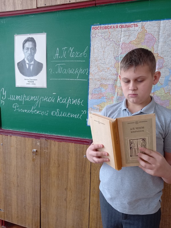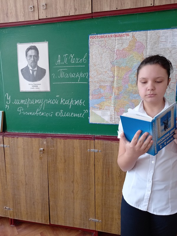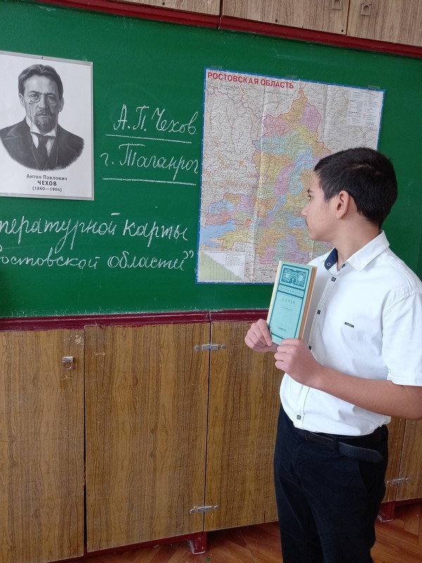 Урок родной русской литературы в 6 классе 28 января 2022 года в преддверии 162-ой годовщины со дня рождения А. П. Чехова проведен у литератерной карты Ростовской области как урок -экскурсия по чеховским местам Таганрога – родины писателя.