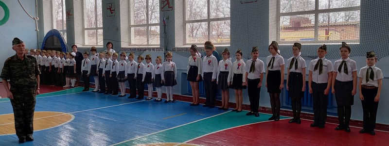 Юнармейские отряды МБОУ Миллеровской СОШ имени Жоры Ковалевского приняли участие в школьном смотре строя и песни, посвящённом Дню защитников Отечества. Каждый класс показал юнармейскую выправку, исполнил патриотическую песню, выполнил ряд обязательных команд: расчёт по порядку и на 1-ый, 2-ой, перестроение в две шеренги, приветствие и доклад командира.