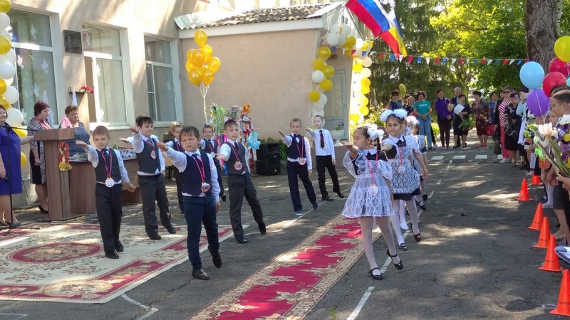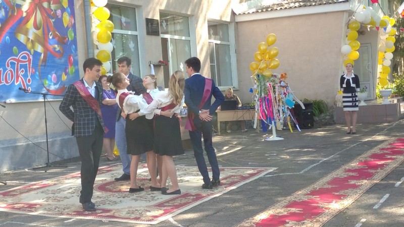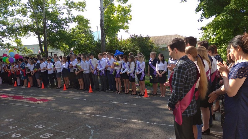 Выпускников поздравляли первые учителя, классные руководители, родители. Учащиеся 1 класса подарили танец. Выпускники танцевали прощальный вальс. А мамы выпускников представили танцевальный флешмоб. Выпускные классы 4, 9. 11 салютовали, выпуская в небо яркие воздушные шарики.
