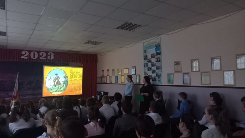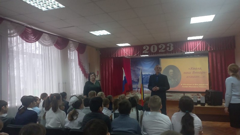 В МБОУ Миллеровской СОШ имени Жоры Ковалевского проведён общешкольный патриотический час общения, посвящённый открытию Года атамана Матвея Платова в Ростовской области. Торжественность моменту подчёркивали символы России и Ростовской области: Флаги, Гимны.