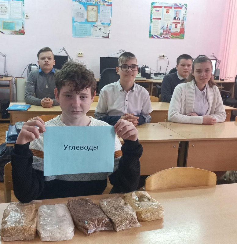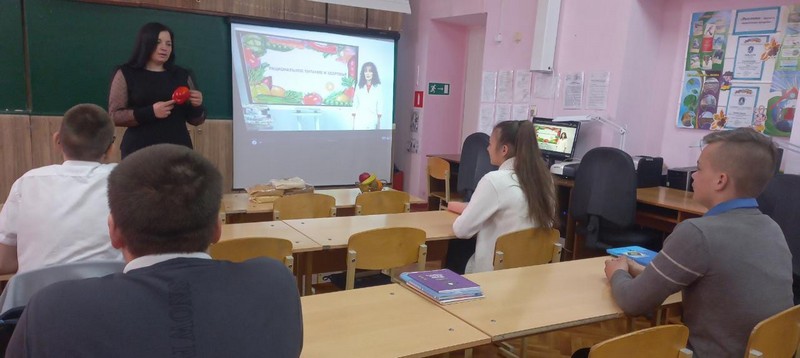 Рудова Анастасия Александровна провела в 8 классе Урок здоровья. Интерес вызвала презентация «Рациональное питание и здоровье», игра-викторина «Какие продукты полезны человеку».