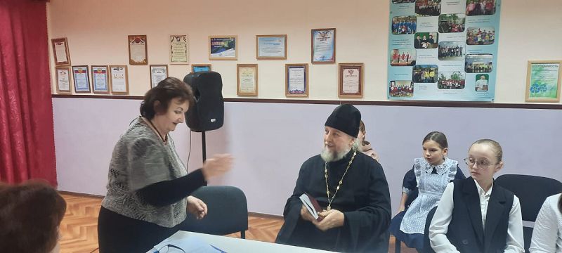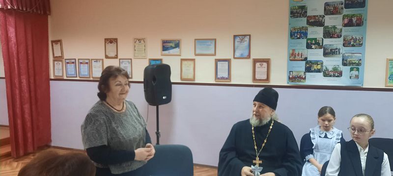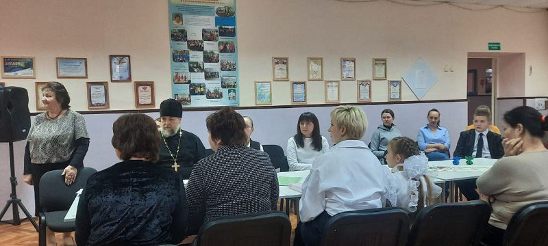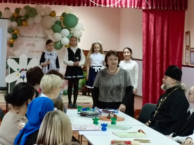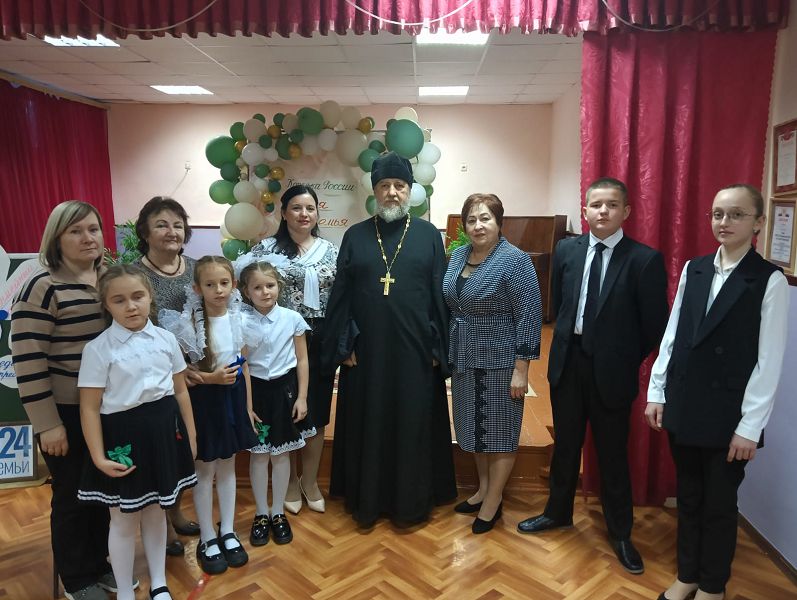 В подарок для всех прозвучала песня «Моя семья» в исполнении второклассниц. Отец Ярослав в своём слове подчеркнул, что семья является духовно-нравственной основой будущего полноценного человека. Батюшка рассказал о своей большой и дружной семье, о семейных ценностях и традициях православной семьи: это любовь, взаимопонимание, уважение, почитание родителей, доброта, ответственность за близких людей, сохранение обычаев.