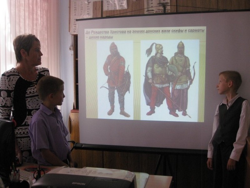 Беседу с показом презентации по истории развития Ростовской области проводит Мухина В.В., классный руководитель 5 класса.