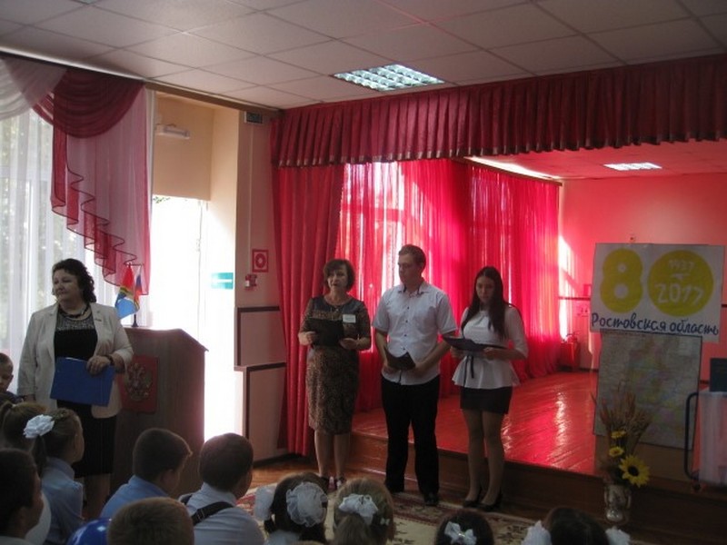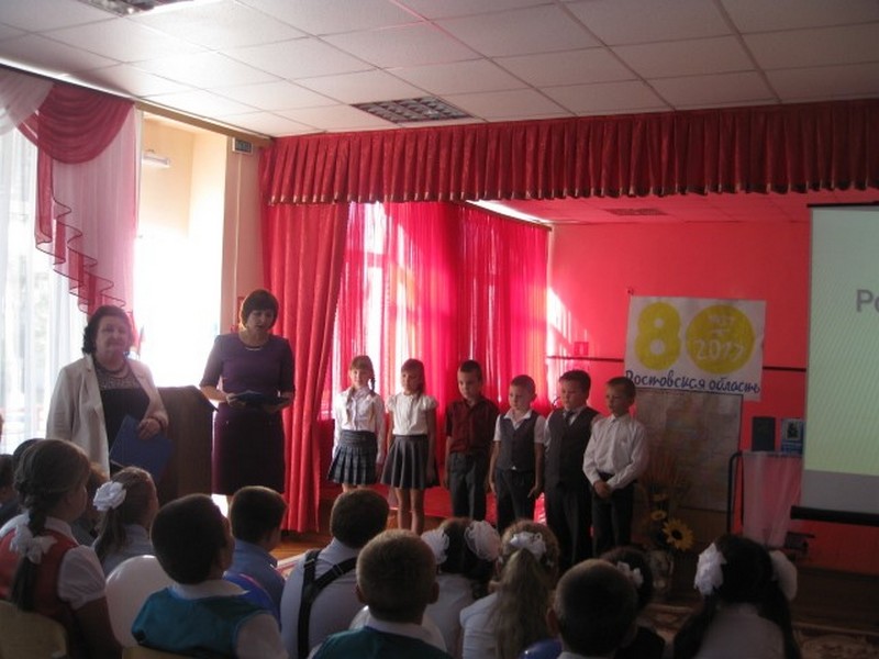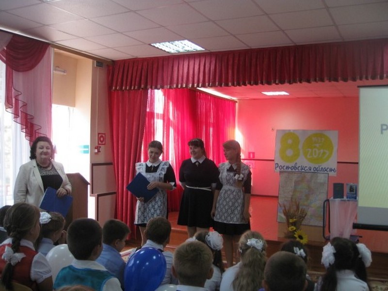 Проведен урок в актовом зале школы. Участие в уроке приняли директор школы Крикуненко А.Н., депутат Собрания депутатов Кринично-Лугского сельского поселения Овчинникова С.В.