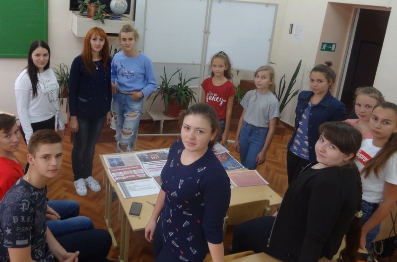 Учащиеся 11 класса, Татарченко Валерия и Злогодухова Анастасия, выделили главные причины революции, движущие силы революции и рассмотрели основные события октябрьской революции. Учащиеся 10 класса, Куценко Виктория, Крикуненко Эллина, Чеботарев Никита, рассмотрели историческое значение революции и главных действующих лиц событий 1917 года. Учащиеся 7 класса, Крикуненко Полина, Хаперскова Юлия, Парий Анастасия подготовили материал о крейсере Аврора и карту «Взятие власти большевиками в стране». Учащиеся 8 класса, Хаперскова Дарья, Склярова Юлия, Куценко Александра и Аленичев Даниил, отвечали за фотографии и лозунги, посвящённые событиям 1917 года.