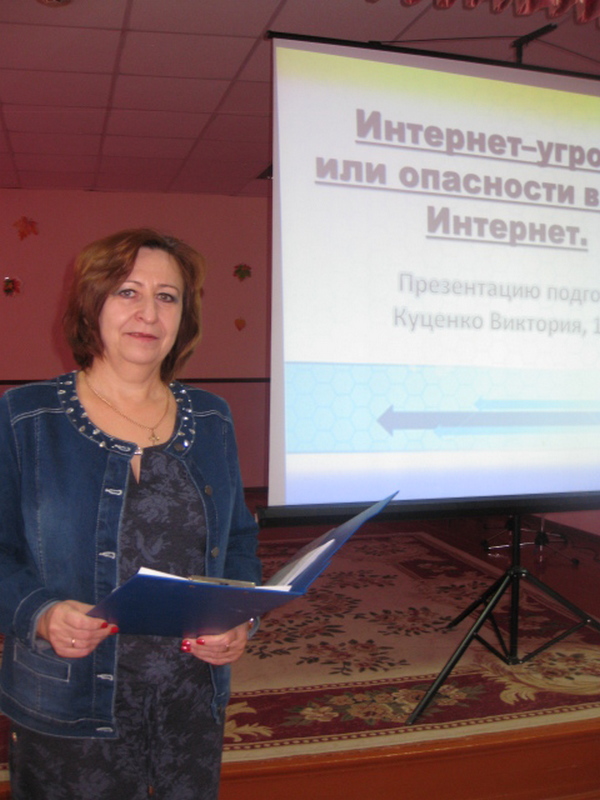 Крикуненко Эллина всем присутствующим дала советы по безопасной работе в сети Интернет. «Правила безопасности в Интернете» заинтересовали многих: и учащихся, и педагогов.