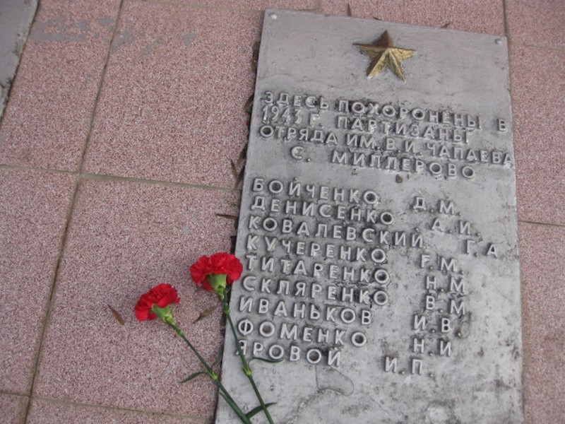 На холодные плиты мемориала из теплых рук миллеровских школьников легли красные гвоздики.