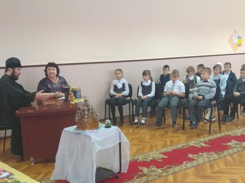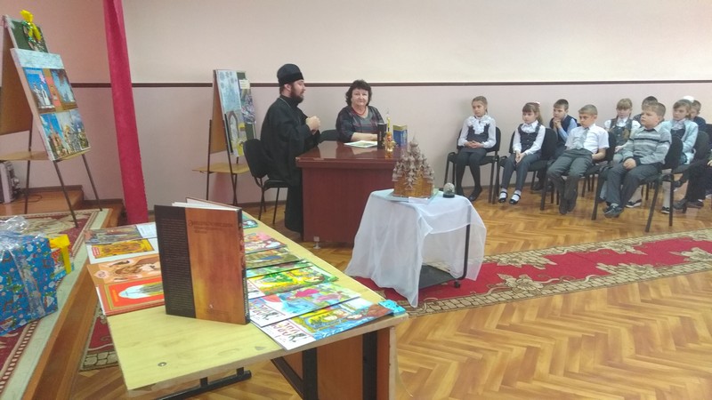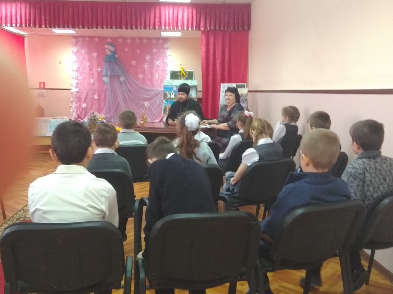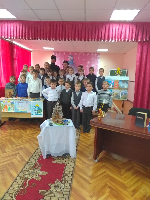 Учащиеся начальных классов встретились с Дмитриевым Всеволодом Юрьевичем, настоятелем храма иконы Казанской Божией матери. Батюшка - отец Всеволод – беседовал с ребятами о ценности жизни, о любви, всепобеждающей любви к родным людям, к родителям, родному краю. О православных праздниках и первых шагах к храму тоже рассказал батюшка. Среди присутствующих учащихся есть дети, которые посещают воскресную школу при храме в селе Миллерово. Учащиеся 4 класса, изучающие предмет «Основы православной культуры», прочли Рождественские стихи. Общение с батюшкой понравилось детям и учителям. Организовала встречу Титаренко О.А., преподаватель курса «Основы православной культуры». Фото-факты данного святочного мероприятия собрала Бодня Олеся, ученица 6 класса, воспитанница воскресной школы.