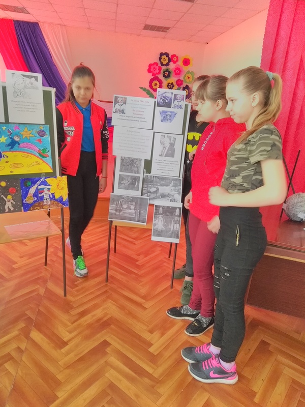 Мухина В.В. организовала учащихся 11 класса на подготовку познавательных презентаций о космосе, космонавтах и космических кораблях. Свои презентации представили Татарченко Валерия, Злогодухова Анастасия, Бабкина Ольга.