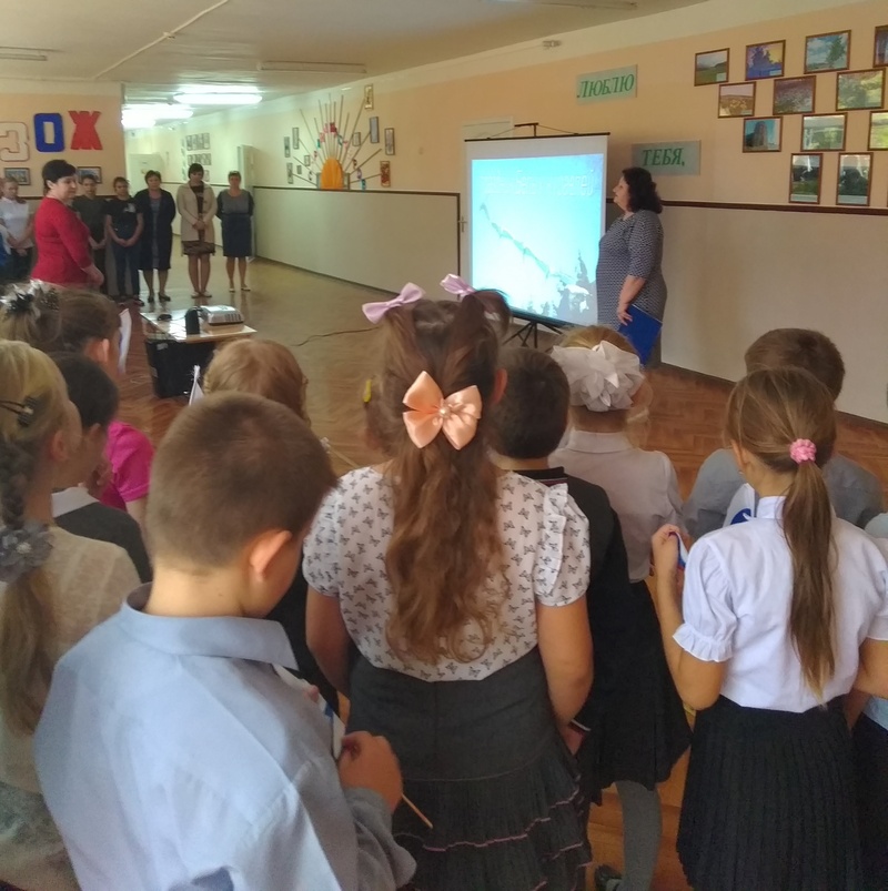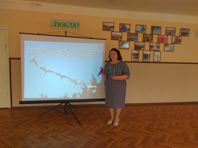 Титаренко О.А., руководитель школьного музея «Родная старина», представила презентацию о целях и задачах Дня белых журавлей, объявила Минуту молчания в память о погибших.