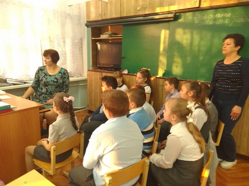 Горьковенко Т.Н., замдиректора по УВР, и Заикина Л.А., учитель начальных классов провели беседу с учащимися 2 и 4 классов по теме «Блокадный хлеб»: смотрели презентацию, читали страницы рассказа «Дорога жизни».