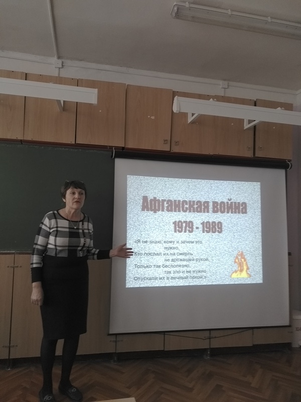 - Куценко Людмила Викторовна, кл. руководитель 8 класса, организовала просмотр и обсуждение видеоролика «Афганистан: 1979-1989 годы».
