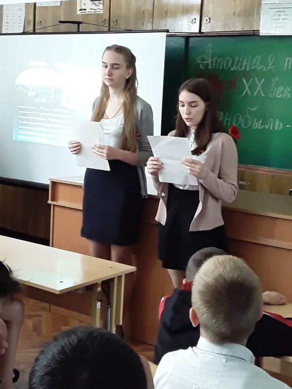 26 апреля прошло мероприятие посвящено 33 годовщине аварии на Чернобыльской АЭС. Провели его старшеклассники 11 класса под руководством учителя физики Мухиной В.В. для учащихся 5-11 классов.