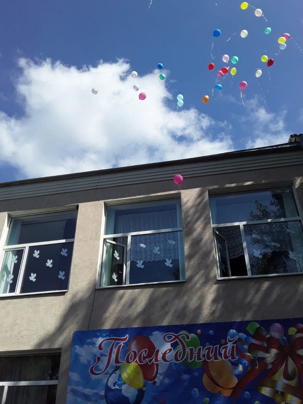 В честь 50-летия школы классы и гости праздника «салютовали» , выпустив в небо 50 ярких гелиевых шариков.