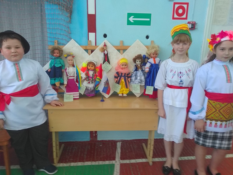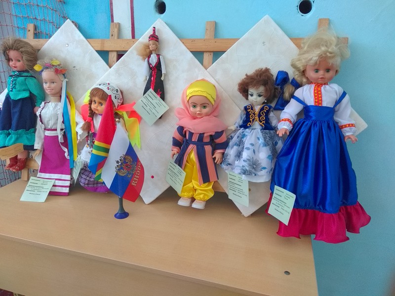 - Члены совета школьного музея представили выставку кукол в национальных костюмах. Данная коллекция хранится в музее школы.