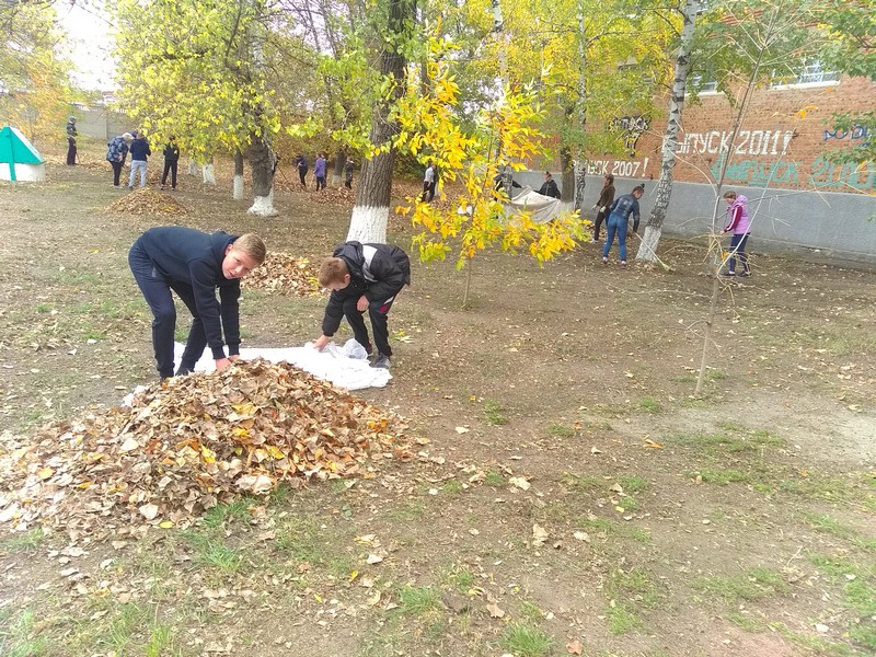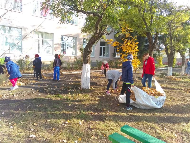 В течение 3 и 4-ой декад октября организованно под руководством классных руководителей прошли субботники на территории школьного двора под девизом «Экология, чистота, уют и труд – рядом идут». Каждый класс наводил осенний порядок на своей территории школьного двора.