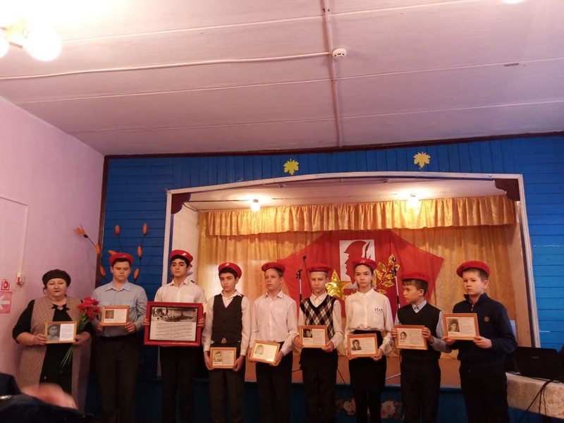 Юнармейцы школьного отряда «Юнармия» прочли патриотические строки, держа в руках портреты миллеровских подпольщиков.