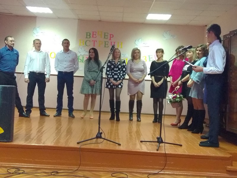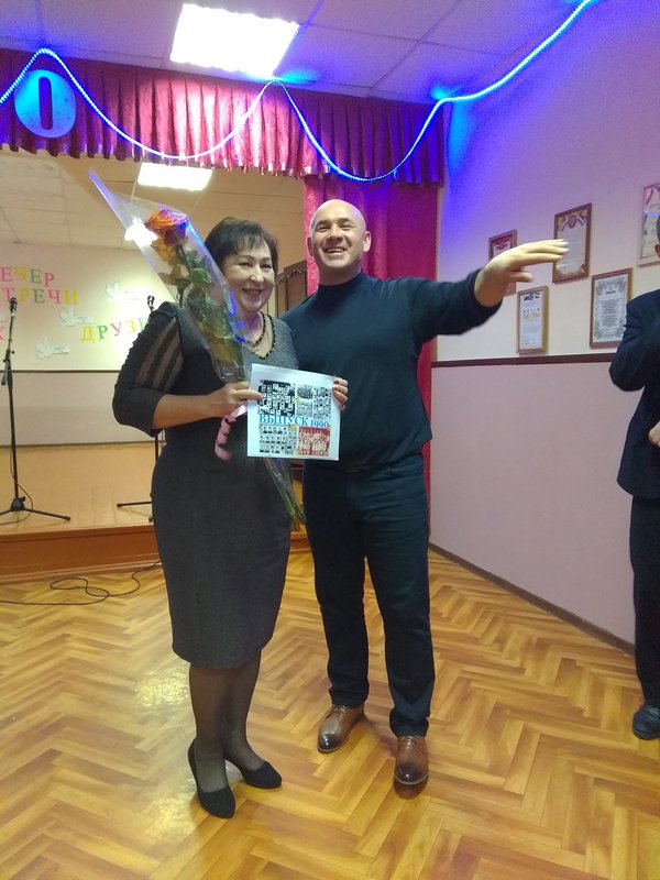 На сцену приглашаются юбилейные выпуски. Активность проявили выпускники 1990 года – 30 лет окончания школы, выпускники 2000 года – 20 лет, 2005 год – 15 лет. Выпускники вручают классным руководителям цветы, говорят слова благодарности школе, делятся информацией, чего достигли в жизни, отвечают на вопросы ведущих.