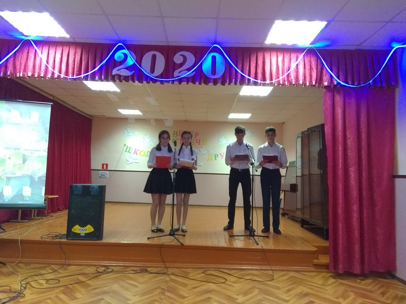 Педагог-организатор Патюкова Е.В. и старшеклассники (Крикуненко Полина, Алисова Ольга, Аленичев Даниил, Мирсалов Тимур) подготовили сценарий торжественной части вечера.
