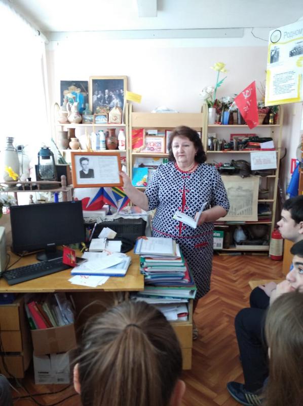 Восьмиклассников на классном часе классный руководитель Овчинникова Светлана Викторовна привела в школьный музей «Родная старина». Музейная встреча проведена в формате «Урок живой истории». Титаренко Ольга Александровна, руководитель музея, привлекла внимание старшеклассников к теме освобождения села Миллерово от немецко-фашистских захватчиков – 77-ой годовщине Победы в селе Миллерово. Вспомнили героев-чапаевцев, которые погибли 21 января 1943 года, не дожившие до 17 февраля – освобождения села. Почтили память 264 воинов, погибших в дни освобождения села в февральские дни 1943 года. Рассказ о воинах, чей прах покоится в братской могиле мемориала, привёл к решению написать письма благодарности от нас родственникам этих воинов-защитников в г. Пятигорск – дочери Бовтута Л.А., г. Волгоград – дочери Питолина Н.И., в г. Волгодонск – семье Ковалевского Г.А.