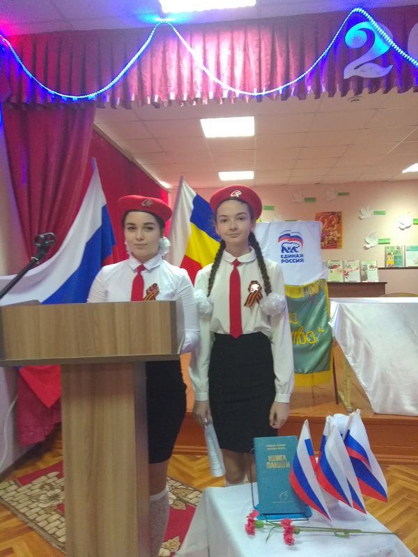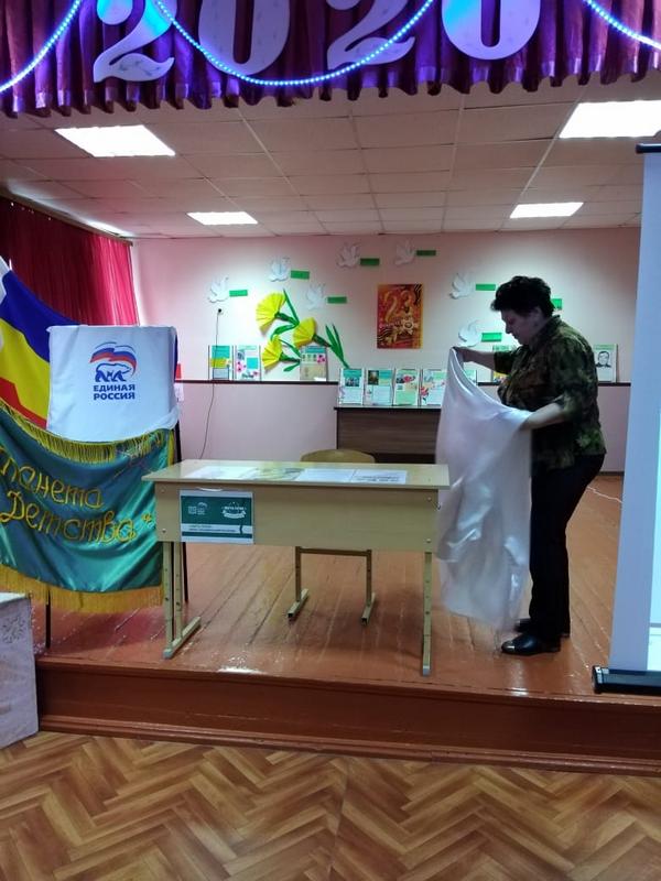 Право первой сесть за «Парту героя» предоставляется отличнице учёбы, председателю школьного отряда «Юнармия», активному члену волонтёрского движения добровольчества молодёжи Куйбышевского района, двукратному призёру районного конкурса «Ученик года» – (2018 и 2019 годов), участнику областного этапа Всероссийского конкурса юных чтецов «Живая классика -2019», ученице 9 класса Миллеровской школы имени Жоры Ковалевского Крикуненко Полине