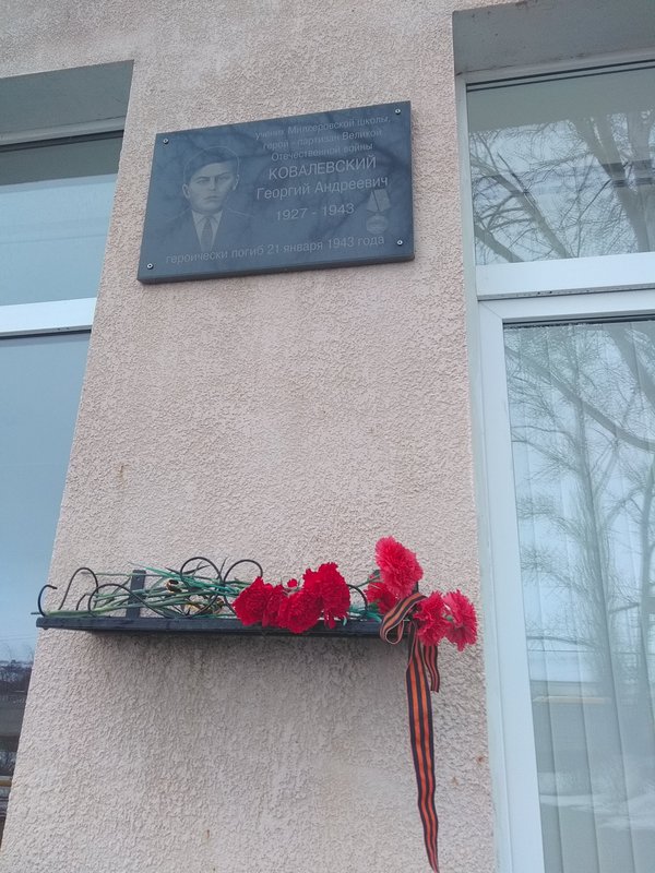 По решению педагогического совета школы, Школьной думы ДПО «Планета Детства» принято постановление открыть «Парту героя» с именем Ковалевского Георгия Андреевича, ученика Миллеровской семилетней довоенной школы, члена молодёжного подполья – партизанского отряда имени Чапаева.