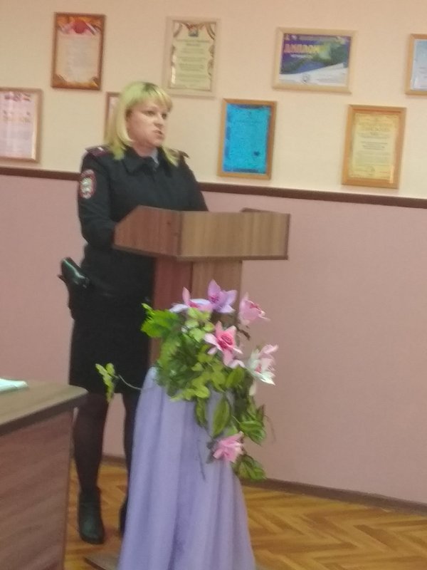 С вопросом «Важность профилактики противоправного поведения несовершеннолетних, вредных привычек у детей и взрослых» выступила Волкова Юлия Васильевна, майор полиции, инспектор ПДН. Напоминание об ответственности несовершеннолетних и родителей за нарушение закона прозвучало ещё раз из уст майора полиции.
