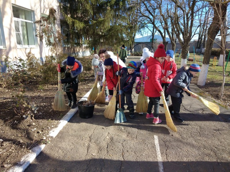 В конце 2-ой декады ноября выдались тёплые по-весеннему, солнечные дни. На школьном дворе проведён субботник по благоустройству и чистоте территории.