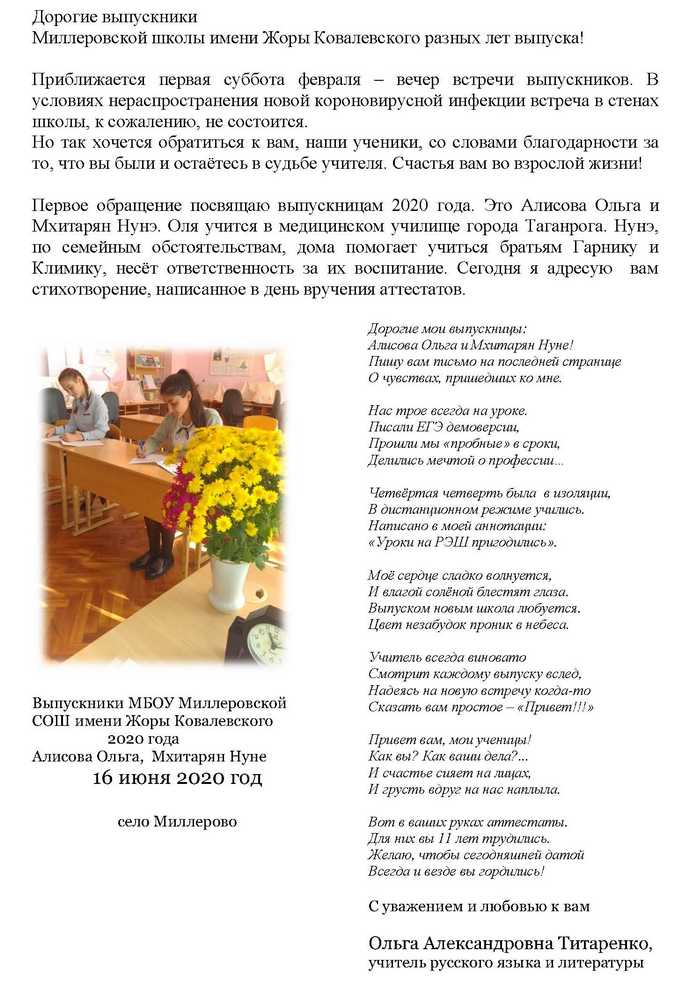 Миллеровской школы имени Жоры Ковалевского разных лет выпуска!