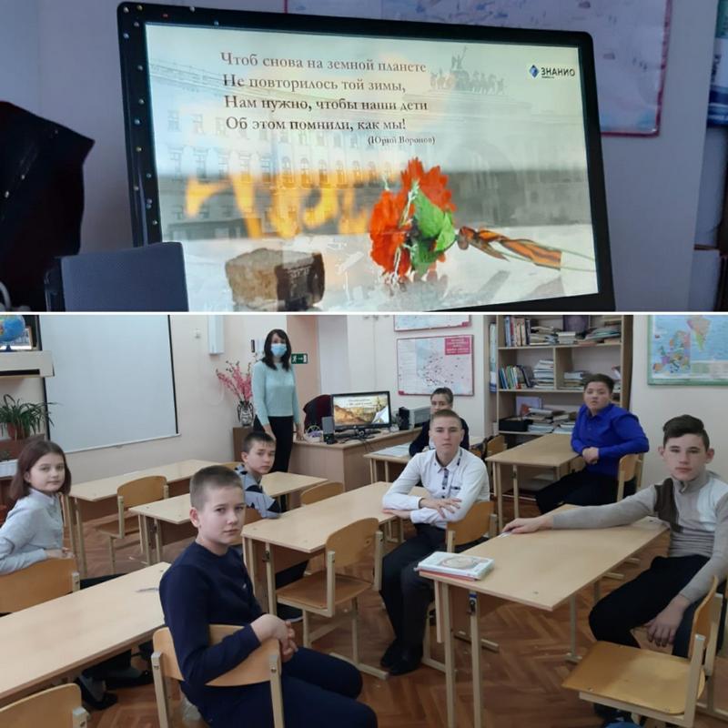 26 января 2021 года в рамках школьного месячника патриотического воспитания «Моё Отечество: я тоже частица России» классные руководители в своих классах провели тематические классные часы, посвящённые Дню воинской славы –Дню полного освобождения Ленинграда от фашистской блокады.