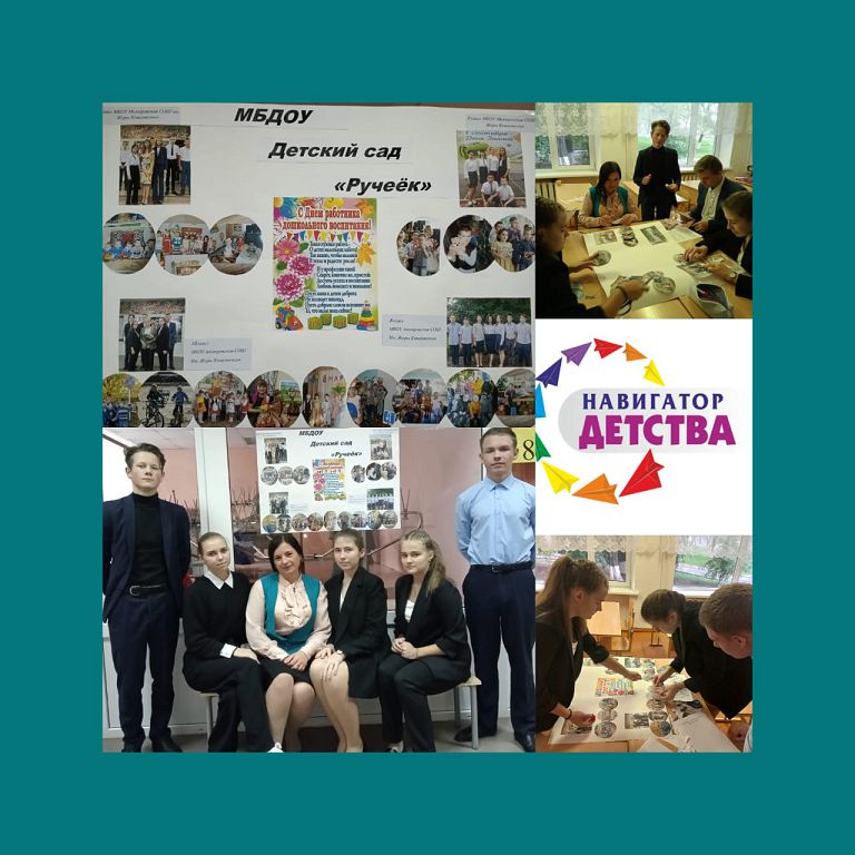 Советник директора по воспитанию Рудова Анастасия Александровна провела со старшеклассниками час общения ко Дню работника дошкольного образования. Школьники вспомнили своих добрых воспитателей детского сада «Ручеёк». Результат беседы – коллективно-творческое дело – фотоколлаж «И снова в садик!». Эта работа размещена в вестибюле школы и будет подарена детскому саду.