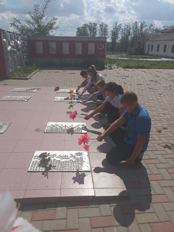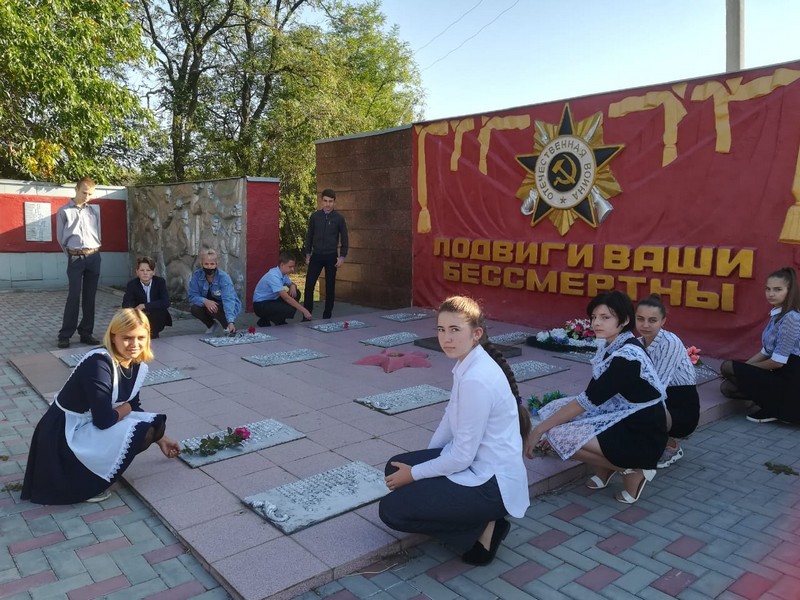 Школьники и педагоги возложили цветы к братской могиле мемориала, где покоится прах 264 солдат и офицеров, постояли в Минуте молчания у мемориальной доски Жоре Ковалевскому, ученику довоенной Миллеровской школы, героически погибшему в борьбе с фашистскими захватчиками.