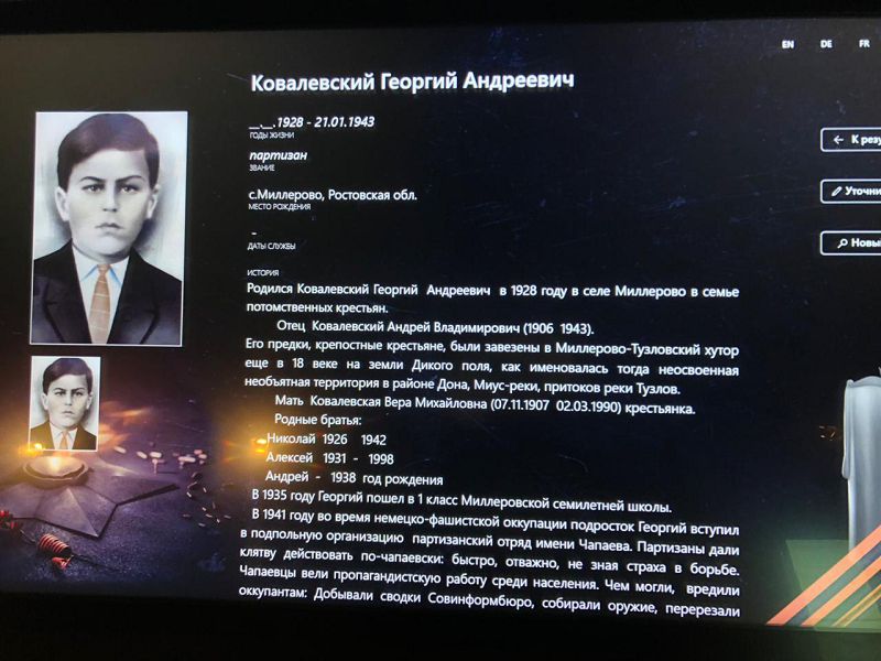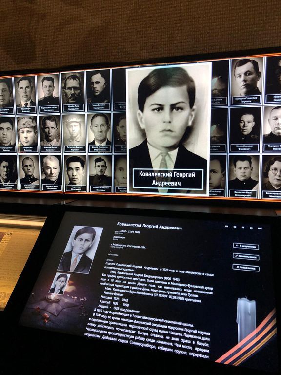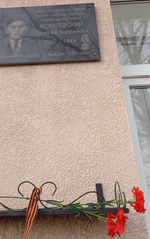 О партизанах села Миллерово и о самом младшем из них, шестнадцатилетнем Жоре Ковалевском, можно узнать из источников современного музейного комплекса «Самбекские высоты». Этот музей посетили учащиеся школы во время автобусных экскурсий в 2021, 2022 г.
